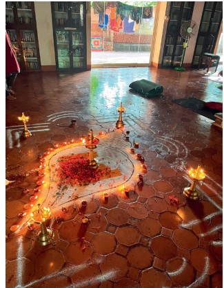 Ayurveda’ya göre sağlığımızı korumak için doğumumuzla gelişen dosha oranımızı korumamız gerekiyor. Asram’da dahil olduğum programda dengemi sağlamak için az yağlı ama lezzetli diyetim benim için özel oluşturulmuş bitkisel ilaçlarla takviye edildi. Günlük hayatımda sebze ağırlıklı ve az yağlı beslendiğim için uygulanan protokole kolaylıkla adapte olabilmek beni rahatlattı. Programım günde 2 saatten oluşan tedavi, yağlı masajlar, yoga, meditasyon ve pranayama’dan (nefes) oluşuyordu. Abhyangam masajının ardından Shirodora şifa tekniğiyle her gün susam ve bitkisel yağlardan oluşan bir karışımın uzun süre alnıma damlatıldığı bir masajla devam ediyordu.