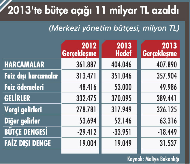 bütçenin hem 2012 yılındakinden hem de hedeflenen düzeyden çok düşük