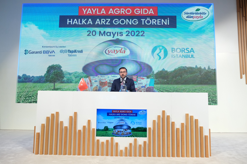 Yayla Agro Gıda hisseleri, 20 Mayıs 2022’de Borsa İstanbul’da düzenlenen gong töreniyle işlem görmeye başladı.