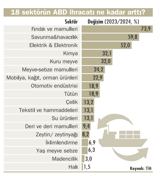 Kimya sektörü de ABD pazarındaki yükselişin önemli bir ayağı. 2020’de 837 milyon dolar olan kimya ihracatının, 2024 sonunda yüzde 82 artışla 1,5 milyar dolara ulaştığını belirten İKMİB Başkanı Adil Pelister, özellikle kişisel bakım, plastik ve temizlik ürünlerinde talebin arttığını söylüyor. İhracatta önemli şirketlerden biri de Akcoat.