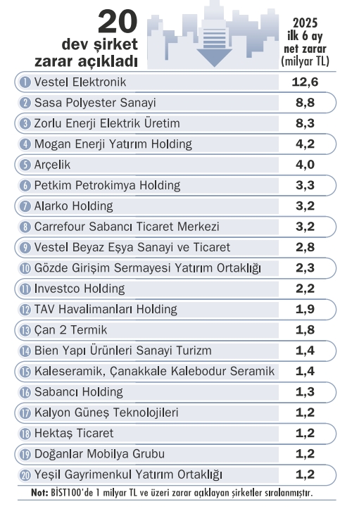 Borsa İstanbul’da finansal sonuçlarını açıklayan 282 şirketten 137’si, bu yılın ilk 6 ayında zarar açıkladı. Geçen yılın aynı dönemine göre zarar açıklayan şirketlerin oranı yüzde 36’dan yüzde 48,6’ya yükseldi. Sanayiciler zor günler geçirirken Vestel, Sasa, Arçelik gibi devlerin de zarar açıklayan şirketler arasında yer alması sektörlerin ne kadar baskı altında olduğunu net bir şekilde gösteriyor.