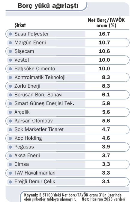 BİST100’deki pek çok büyük şirketin borç yükü riskli seviyelerde. Şirketin faaliyet kârıyla borcunu kaç yılda ödeyebileceğini gösteren Net Borç/FAVÖK oranının genellikle 3’ün altında olması tercih edilirken BİST100’deki 18 şirkette bu oran 3’ün üzerinde. 4-5’in üstündeki oranların borç açısından “zorlanma” seviyeleri olduğunu söyleyen Osmanlı Portföy Yönetimi Genel Müdürü Mehmet Gerz, “Borçlu ve ihracatçı şirketlerin borç yükü açısından ne kadar zorlandığı bilançolardan görülüyor” diyor. Vestel’in ilk yarı yıl zararının 12,6 milyar TL, Net Borç/FAVÖK oranınınsa 10’u geçtiğini söyleyen Gerz, “Küresel büyüme hamlesi yapan Arçelik ise ilk yarıda 4 milyar TL zarar açıklarken Net Borç/FAVÖK oranı 5,7” diyor.
