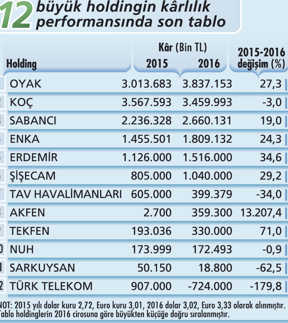 Türkiye ekonomisinin yüzde 2,9 büyüdüğü, ihracatın yüzde 2 daraldığı ve işsizliğin 6 yılın zirvesine ulaştığı 2016’da Türkiye’nin en büyük grupları büyümede sınıfı başarıyla geçti...