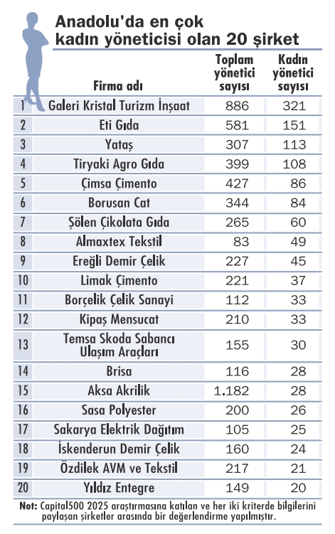 Capital’in “Kadın Dostu Anadolu Şirketleri Araştırması” bölgedeki şirketlerde çalışan, yönetici ve yönetim kurulu pozisyonlarındaki kadın temsil oranına ışık tutuyor. Araştırma, mevcut durumun fotoğrafını çekerek kadın liderlerin ajandasını, önceliklerini ve iş dünyasına getirdiği farklı bakış açılarını da görünür kılıyor. Böylece Anadolu’nun yükselen kadın liderlerinin kendi ekosistemlerine yön verişi daha net ortaya çıkıyor.