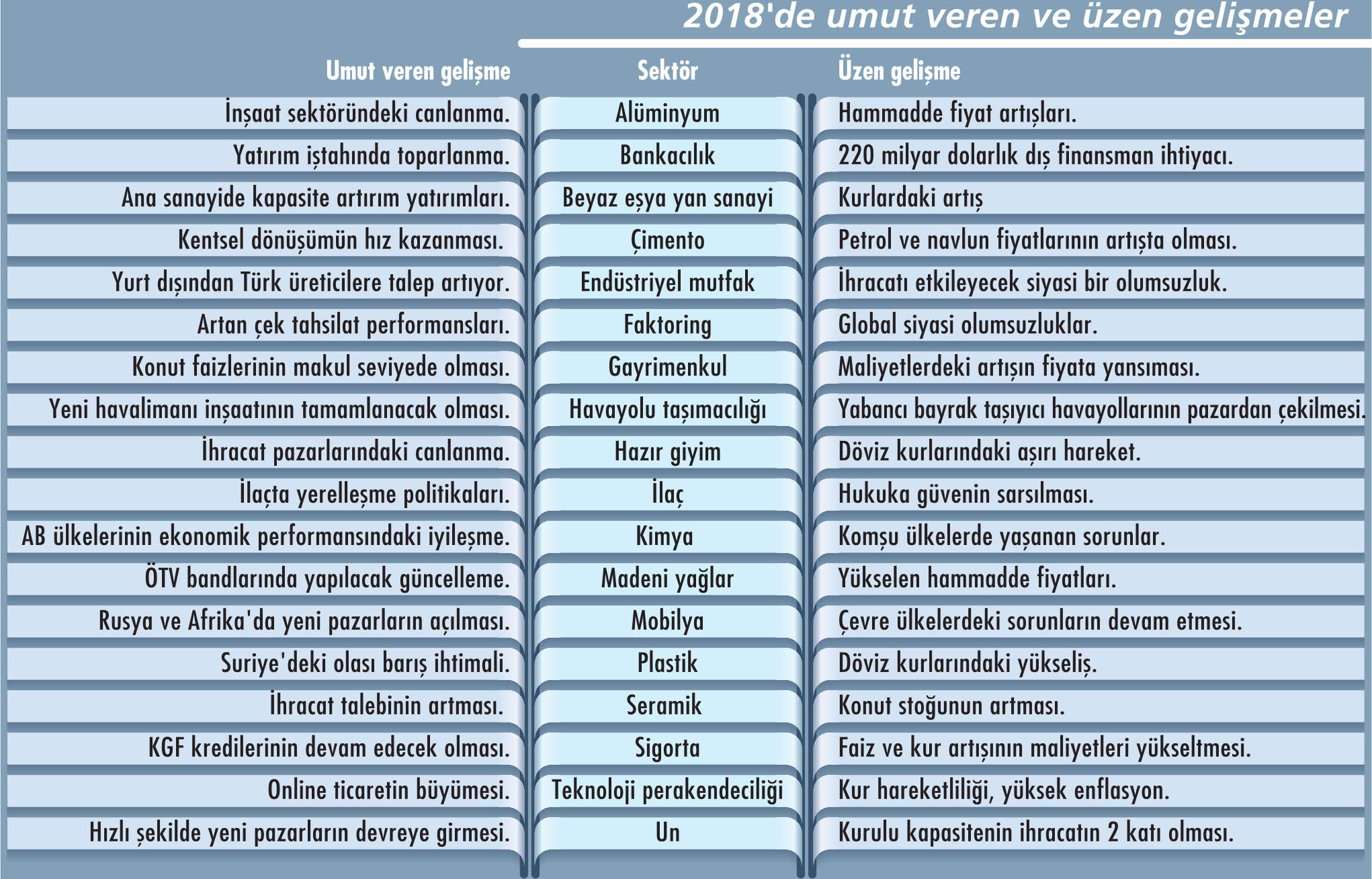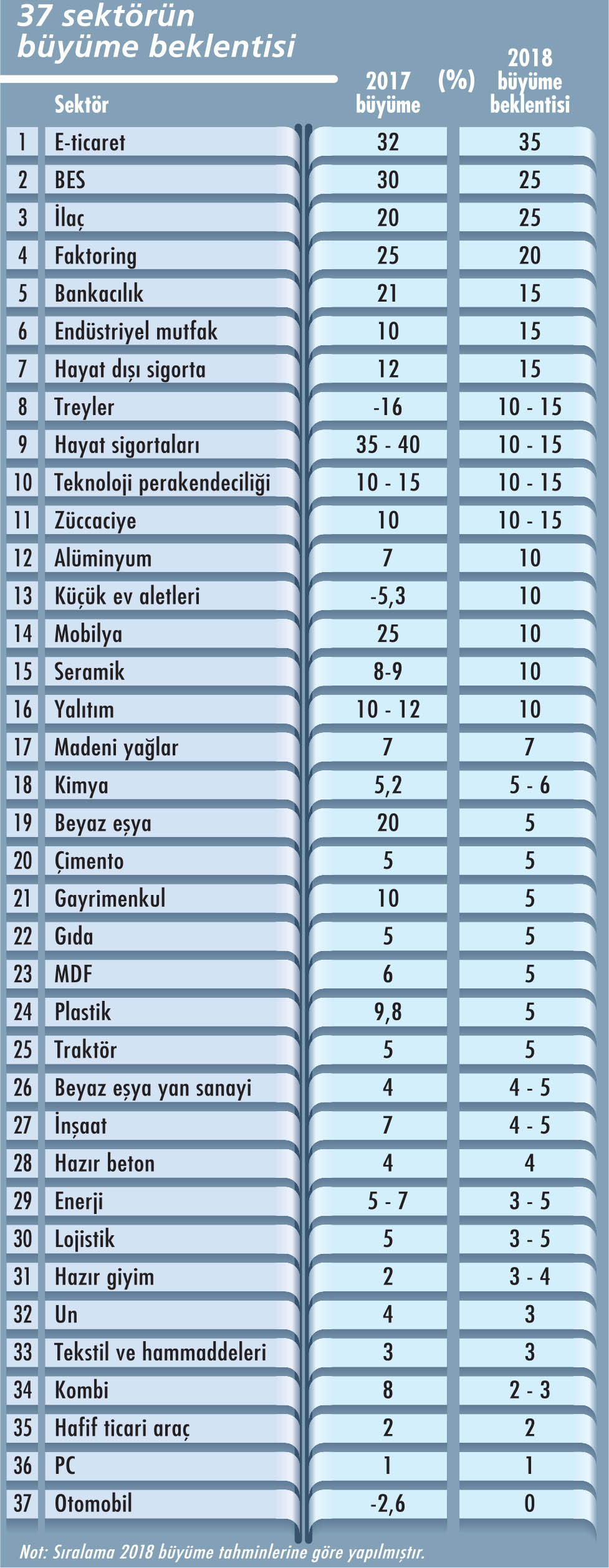 Sektörler için 2017 iyi bir yıldı. 2018 için de aynı beklenti var. 37 sektörden 36’sında da 2018’de büyüme öngörülüyor...