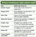 Aslında sıkıntı uzun zamandır var. Markalı konut alan tüketiciler, yüksek aidatlardan şikayetçi. Bazı projelerde güvenlikten havuza, spor alanlarından kafelere kadar uzanan sosyal yaşam için 1.200 TL'ye kadar çıkan aidatlar var. Bu sıkıntıyı gören inşaat şirketleri, yeni bir dönem başlattı. Aidatlar, markalı konut projelerinde rekabettin unsurlarından biri oldu. Bazı şirketler, yeni projelerinde aidatları baştan düşük tutuyor. Bazıları ise 2-3 yıl aidat almayacağını açıklıyor. Son 10 yıldır markalı konut projeleri yükselişte. inşaat şirketleri, bu projelerle sadece ev değil bir sosyal yaşam da sunuyor. Yüzme havuzu, park, kafe, spor salonu, spor alanları, yürüyüş alanları, tenis kortu, güvenlik gibi pek çok sosyal hizmeti de barındıran bu projelerden konut alanlar, belli bir maliyete de katlanmak zorunda kalıyor. Aidat adı altında organize edilen bu maliyetler, siteden siteye değişiklik gösteriyor. Bazı sitelerde aidatlar, bin 200 TL'lere kadar yükselebiliyor. Bu da neredeyse istanbul genelinde iyi semtlerdeki kira bedeline denk geliyor. Örneğin istanbul'un en prestijli sitelerinden biri olan Kemer Country'de site aidatları ısınma hariç 600-bin 200 TL arasında değişiyor. Yine Kemerburgaz'da yer alan istanbul istanbul evlerinde aidatlar bin 200 TL'ye ulaşıyor. Lüks otel hizmeti veren rezidans projelerinde ise aidatlar metrekarede 9.5 TL'ye kadar çıkabiliyor. Kaliteli yaşam standardını yaşamak için bu sitelerden ev alanlar, artık ortalama standarttaki bir semtte 2+1 dairelerin kirasına denk gelen aidatlar ödemekten şikayetçi. Hatta bazıları da oturdukları sitelerden uzaklaşıp aidatı daha düşük yerleri tercih etmeye başlamış durumda. Markalı konut üreticileri de insanların bu eğilimini gözlemleyerek yeni projelerinde aidatları rakip projelere göre rekabet unsuru olarak ön plana çıkarmaya başladı. Geçmişte havuz, sosyal donatılar yeni projelerde rakipleri için rekabet unsuru olurken artık aidatlar da rekabet unsurları arasına girmeyi başardı. Tabloyu görmek için görsele tıklayın. ~ YENİ UYGULAMALAR