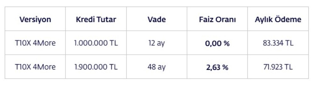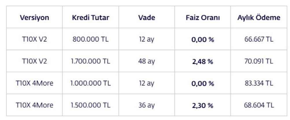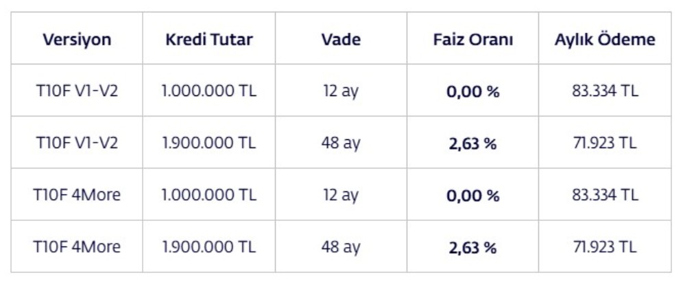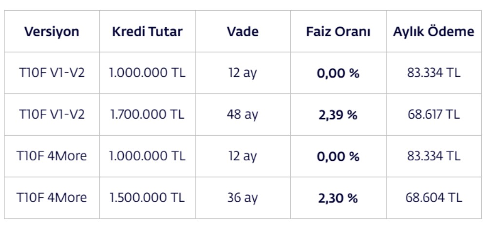 Togg'dan yapılan açıklamada "Yılın son ve en yüksek kredi" desteği denildi. İşte Togg'un açıkladığı finansman seçenekleri: