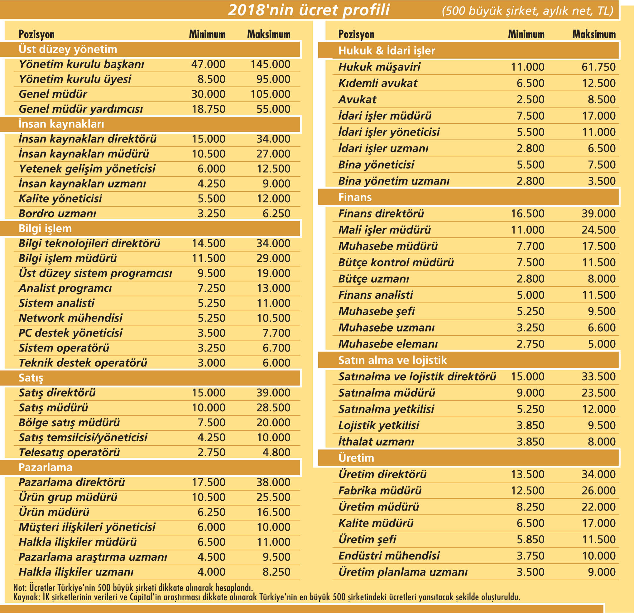 2018’de ücret artış oranlarının enflasyonun üzerine çıkmamasının nedeni şirketlerin karşı karşıya olduğu kârlılık baskısı olacak. Egon Zehnder Türkiye Yönetici Ortağı Murat Yeşildere, 2018’de şirketlerin ağırlıklı olarak yüzde 10’un üzerinde zam yapmayacağını belirtiyor. Ona göre bu yılın kaybedeni orta düzey yöneticiler olabilir. Çünkü, ağırlıklı olarak pazar ortalamasının paralelinde veya üzerinde kazanan orta ve üst düzey yöneticilerin bazıları enflasyon ayarlamasında sınırlı artış alacak bazıları da hiç alamayacak. Yeşildere, “Bu yıl orta-üst seviye yöneticilerin ücret seviyeleri için daha detaylı analiz yapılacağını ve çok daha muhafazakar artış oranları belirleneceğini öngörüyorum” diyor. AL Danışmanlık Genel Müdürü Ayşen Laçinel de orta ve üst kademede zam oranlarının düşeceği düşüncesinde. 2018’de zam oranlarının enflasyonun altında kalacağını ve asgari ücretlilere mecburen yapılacak zam dışında hiç zam yapılmayacağını belirtiyor.
